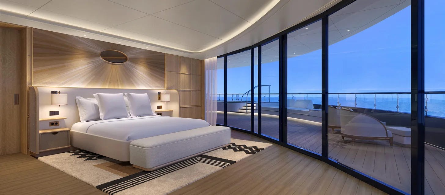 The ship is not designed to feel like a ship. It is designed to feel like a private residence that moves. Public spaces are calm and open. Suite layouts prioritize flow and light. The overall atmosphere is closer to a boutique grand hotel than anything currently operating in the cruise sector.