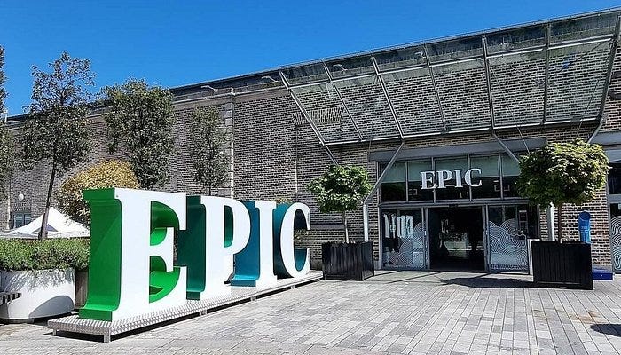EPIC Irish Emigration Museum on the north docklands. Custom House and Famine Memorial.