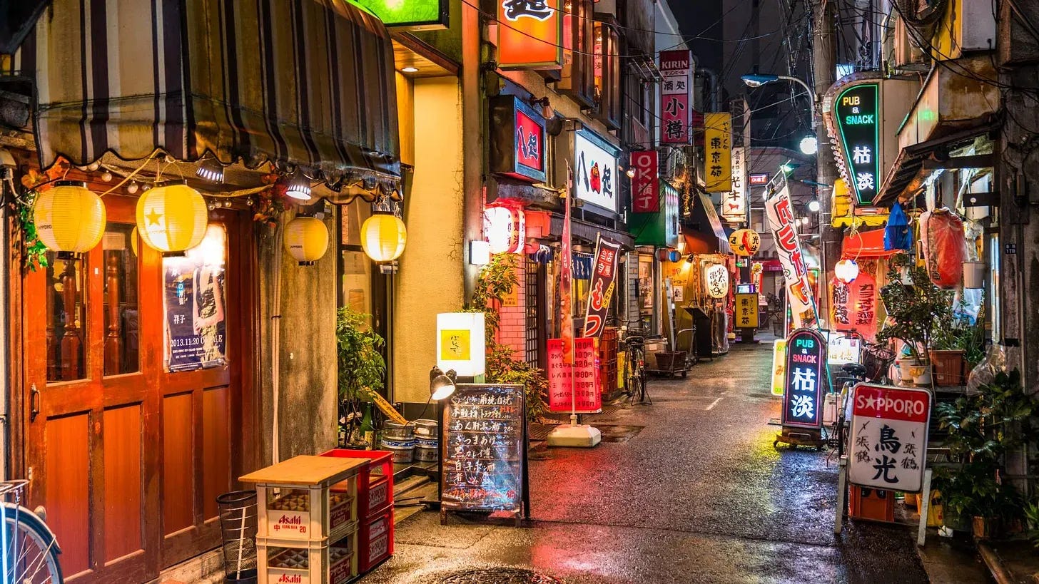 Shinjuku contains multitudes. During the day it is a major transit hub and commercial center. At night, the east side becomes one of the most energetic entertainment districts in Asia, while the west side is home to the city’s skyline of high-rise hotels and corporate towers. Golden Gai, a dense cluster of tiny bars tucked into a few narrow alleyways near Kabukicho, is one of the most distinctive drinking experiences anywhere in the world.